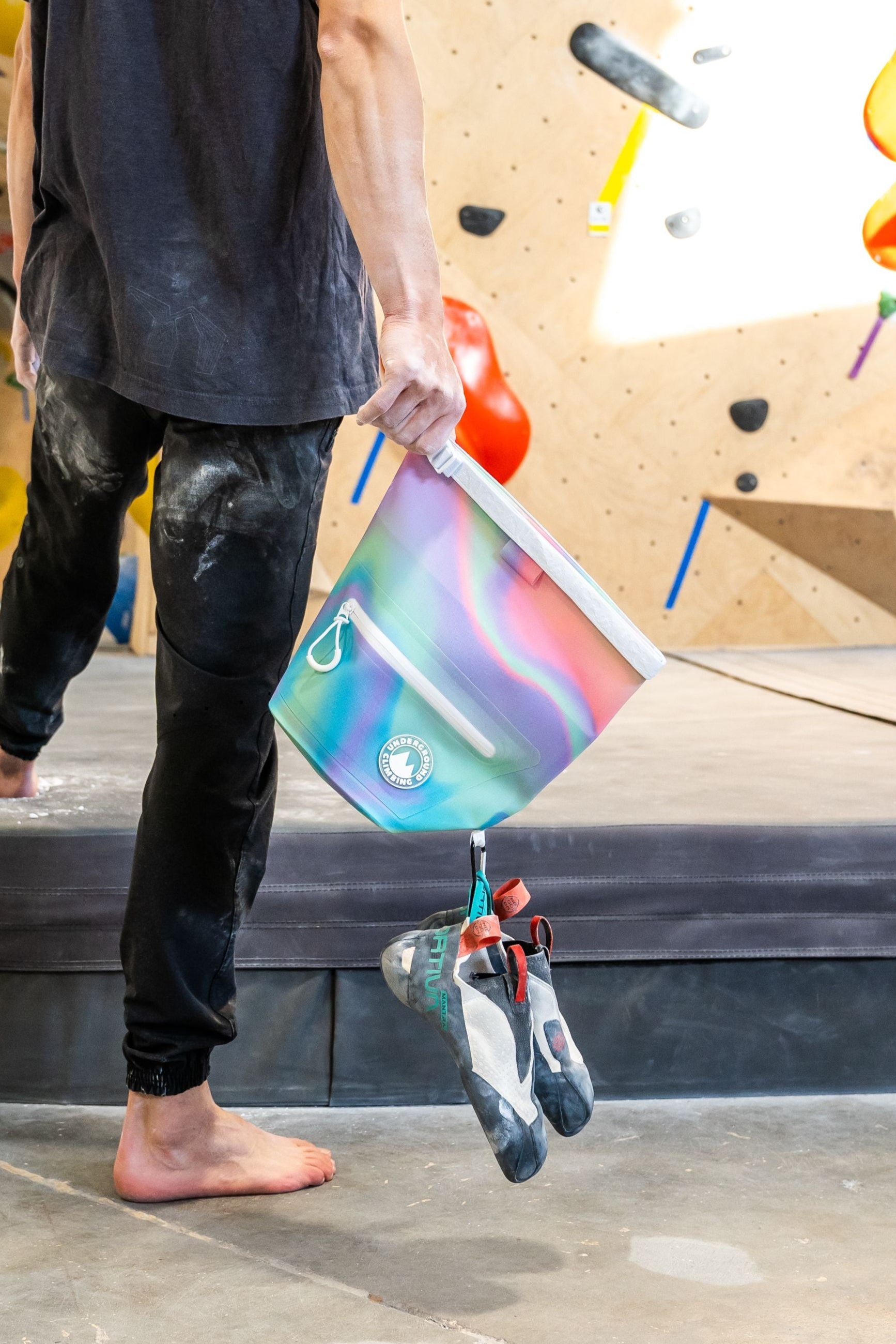 - Gear loop for attaching climbing shoes, tape, etc. (carabiner included).